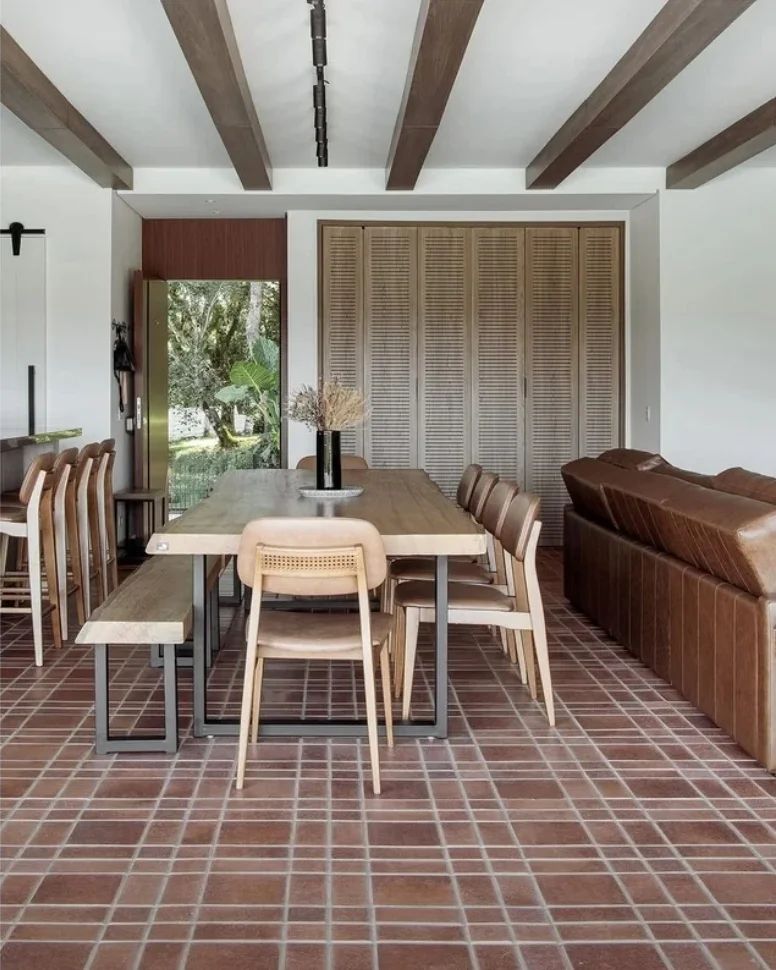 O piso Envelho Mesclado celebra a herança da terracota com um acabamento que evoca o passar do tempo. Fabricado em cerâmica de alta resistência, mantém a alma artesanal do barro cozido, com variações naturais de cor e de textura.