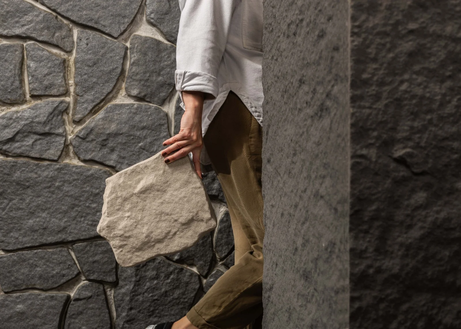 O design singular do Lasca oferece um estilo moderno e sofisticado, com peças mais planas que sugerem um encaixe aleatório para criar uma parede onde a beleza natural das rochas encontra a funcionalidade duradoura do concreto.